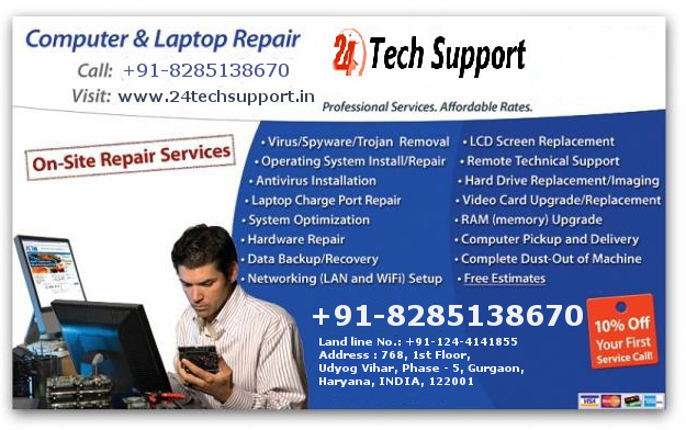 24techsupport is one of the leading PC Technical Support Services provider Company in Udyog Vihar, Sushant Lok, MG Road Gurgaon with dedicated expert PC technician. We also provide Notebook repair, Email, Network Support with affordable prices at DOOR Step. It has proved itself to be the best and the most comfortable option for users for fixing any kind of problem related to computer and its related devices.