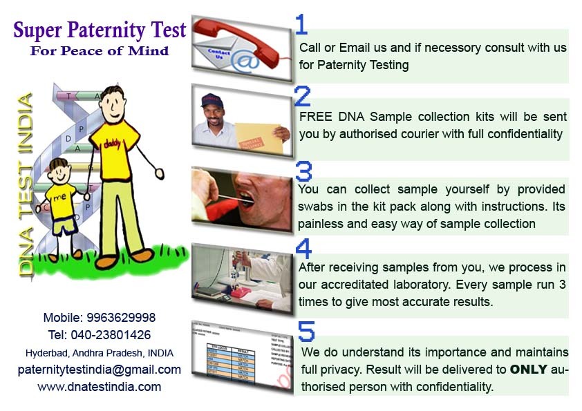 DNA Test India launched by OTS & Services. We believe in offering Accurate, Affordable, Reliable and Confidential DNA tests including DNA Paternity Testing. FREE Sample collection can be obtained by www.dnacenterindia.com.